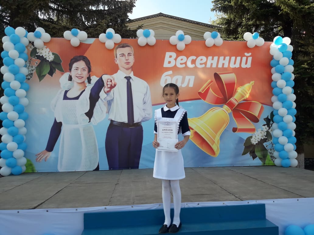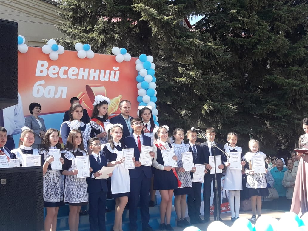 На весеннем балу-2019 Благодарственными письмами Администрации района были награждены победители и призеры регионального этапа Всероссийской олимпиады школьников. Восемнадцать одаренных учащихся удостоены Гранта ректора УГНТУ Бахтизина Р.Н. Среди тех, кто получил Грант есть и пятиклассница из нашей школы.
