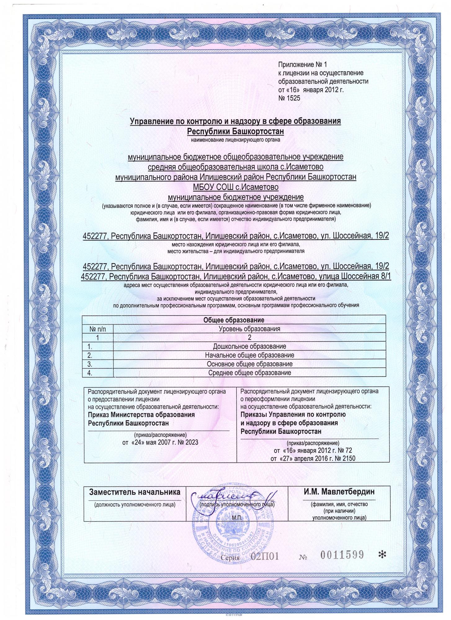Срок действия государственной аккредитации образовательной организации по основным общеобразовательным программам в отношении каждого уровня образования: до 28 января 2027 года.|